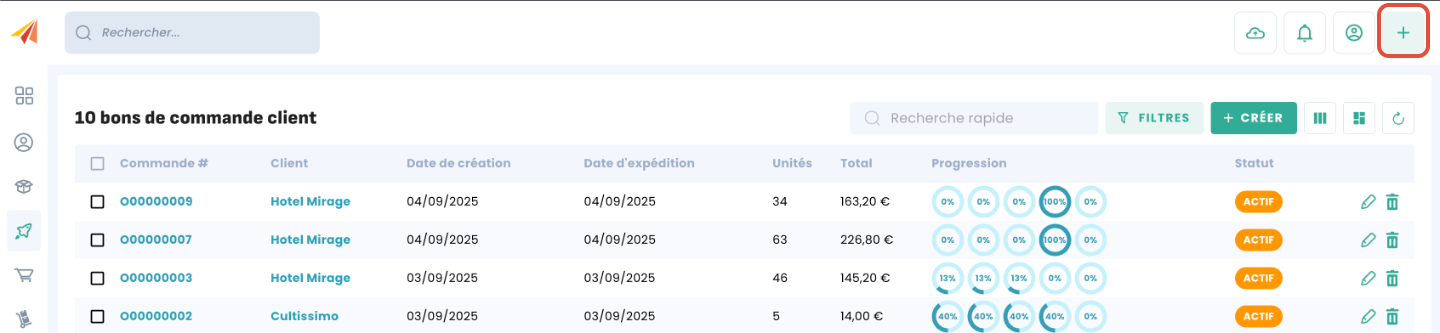 • Cliquez sur le bouton "+" en haut à droite de toutes les pages :