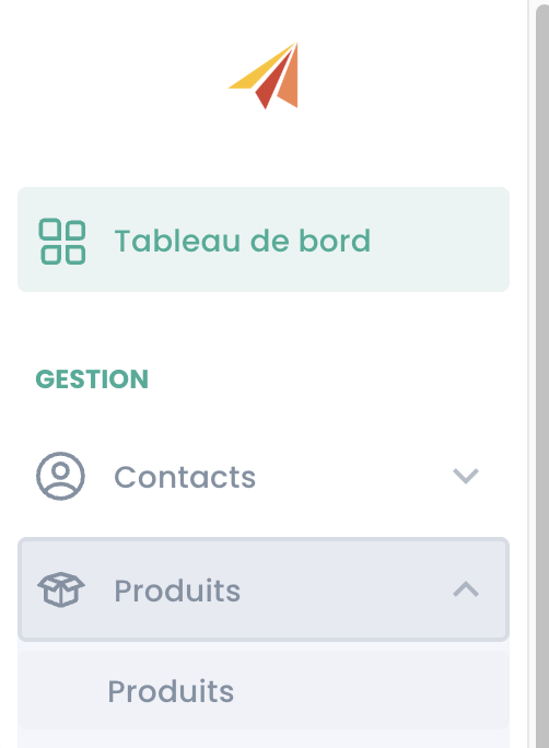 Les services sont des activités proposées par des personnes, telles que des techniciens ou des professionnels. Vous pouvez visualiser la liste de tous vos produits et en créer de nouveaux à partir du menu "Produits" :