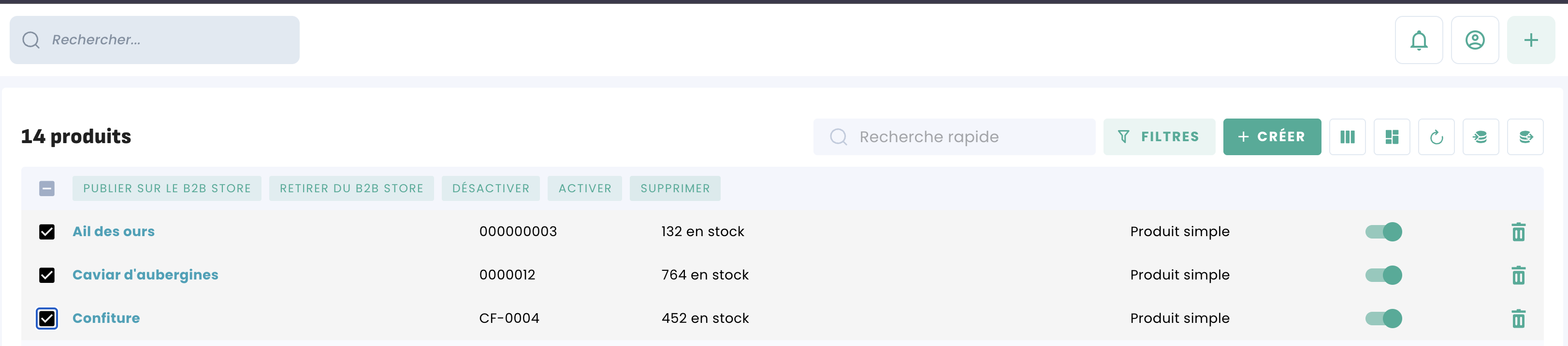 Ceci est la liste de vos produits. Visualisez ou éditez la fiche d’un produit en cliquant sur le nom du produit.
