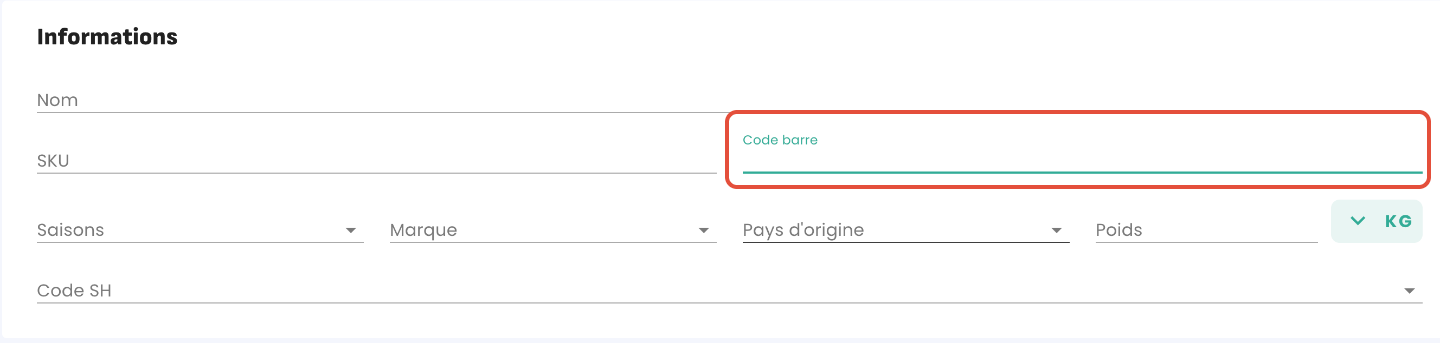 Pour ajouter un code-barres à vos produits, scannez simplement le code-barres du produit dans le champ "Code-barres" puis enregistrez.
