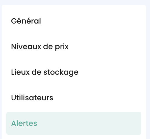 - Pour créer une alerte, allez dans le menu "Paramètres" > "Alertes" :