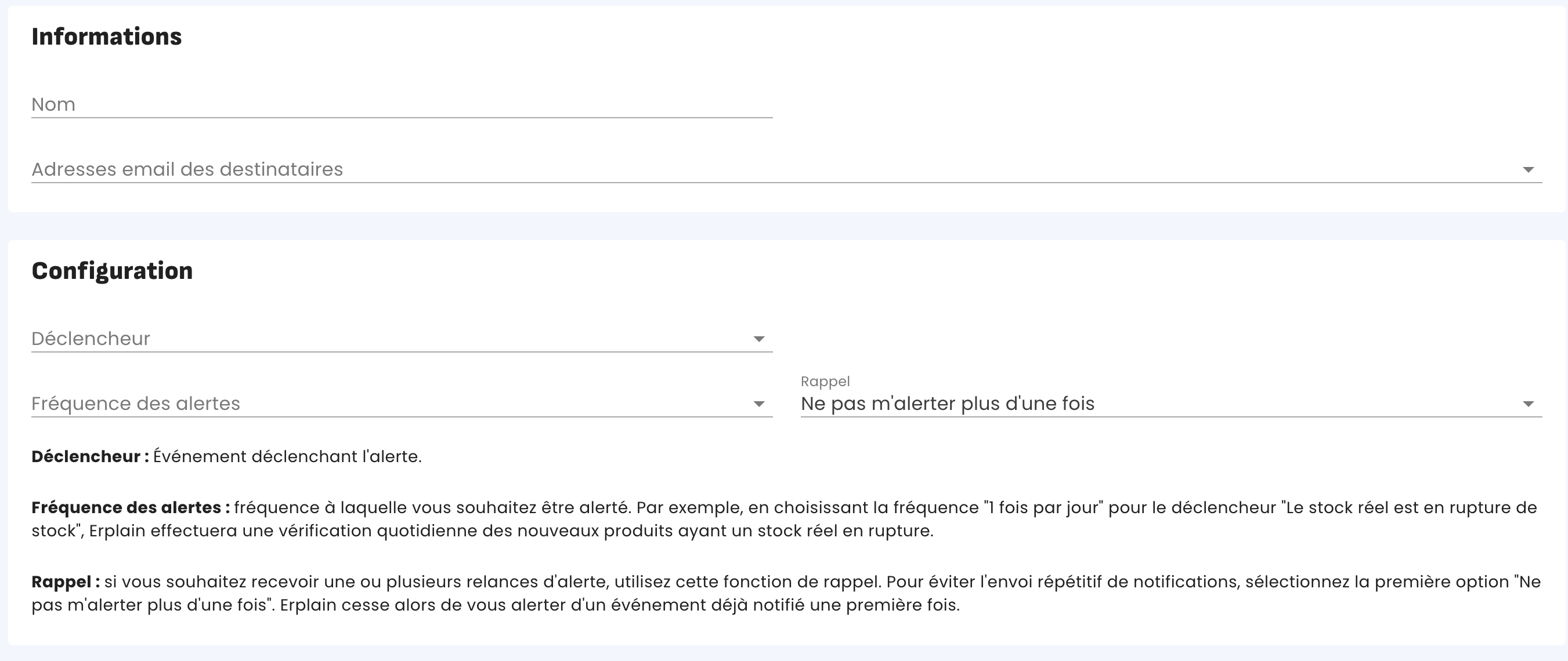Note : Le destinataire de l'alerte ne doit pas forcément être un autre utilisateur d'Erplain.