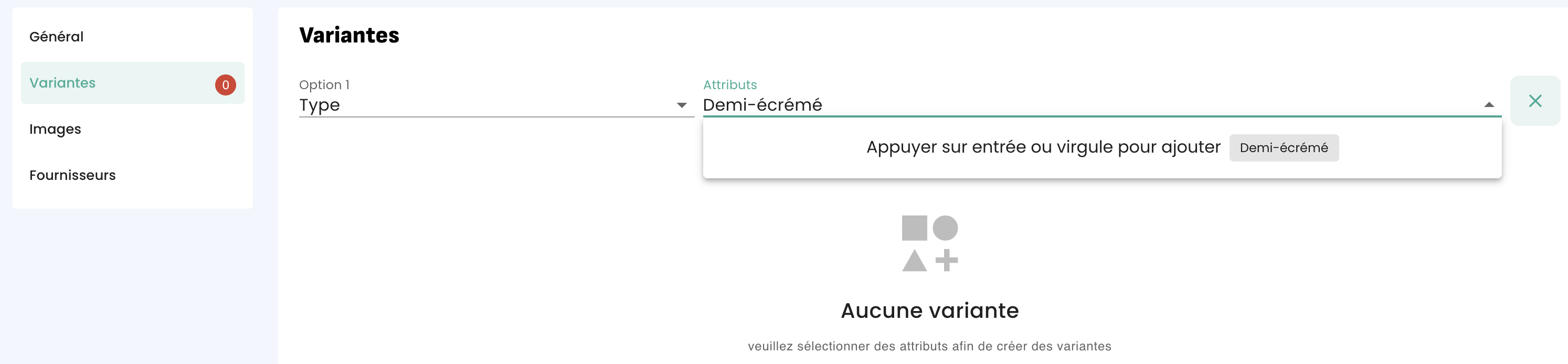 Cet article vous apprend à gérer vos options et attributs pour vos variantes de produits.