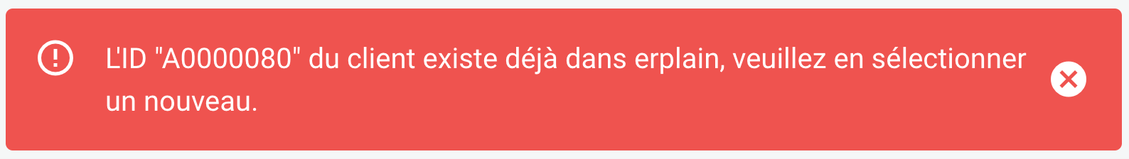 Exemple avec un identifiant client déjà utilisé dans la colonne "Identifiant client" :