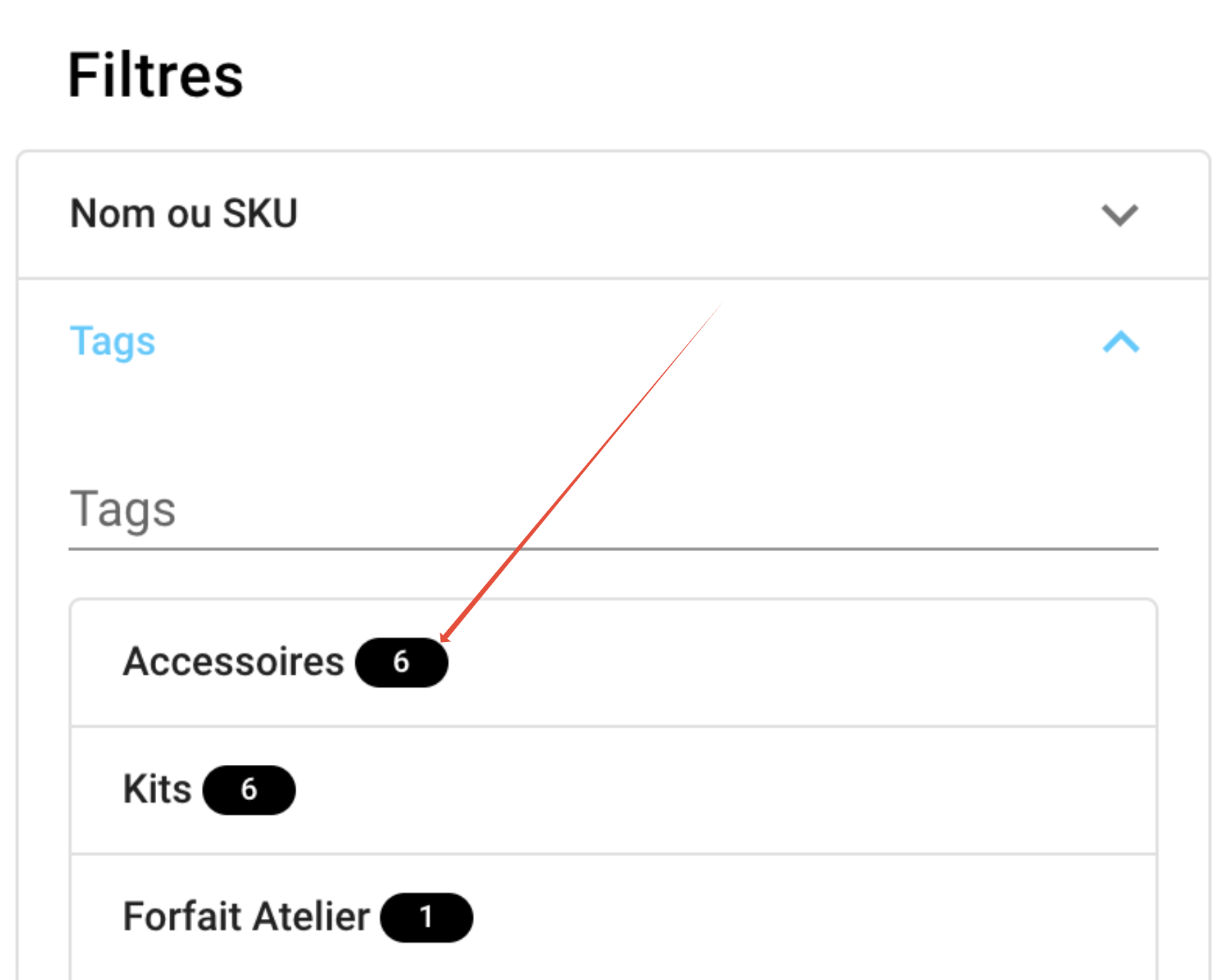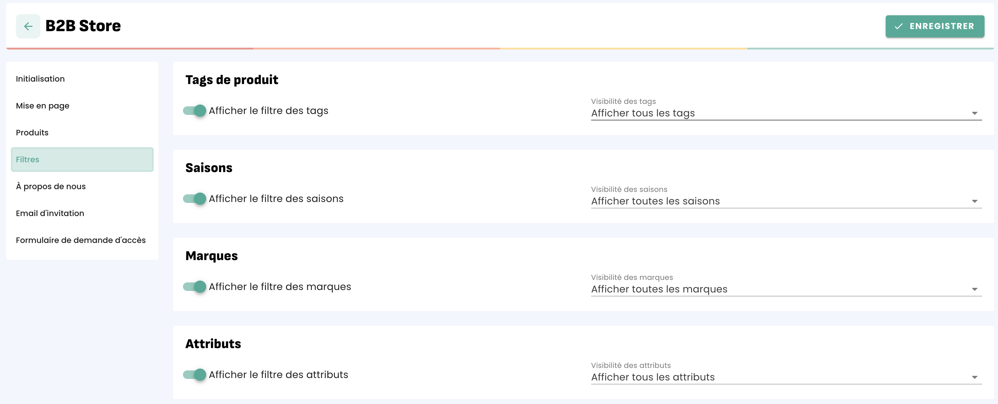 Dans cette section, vous pouvez choisir les filtres à afficher dans votre boutique :