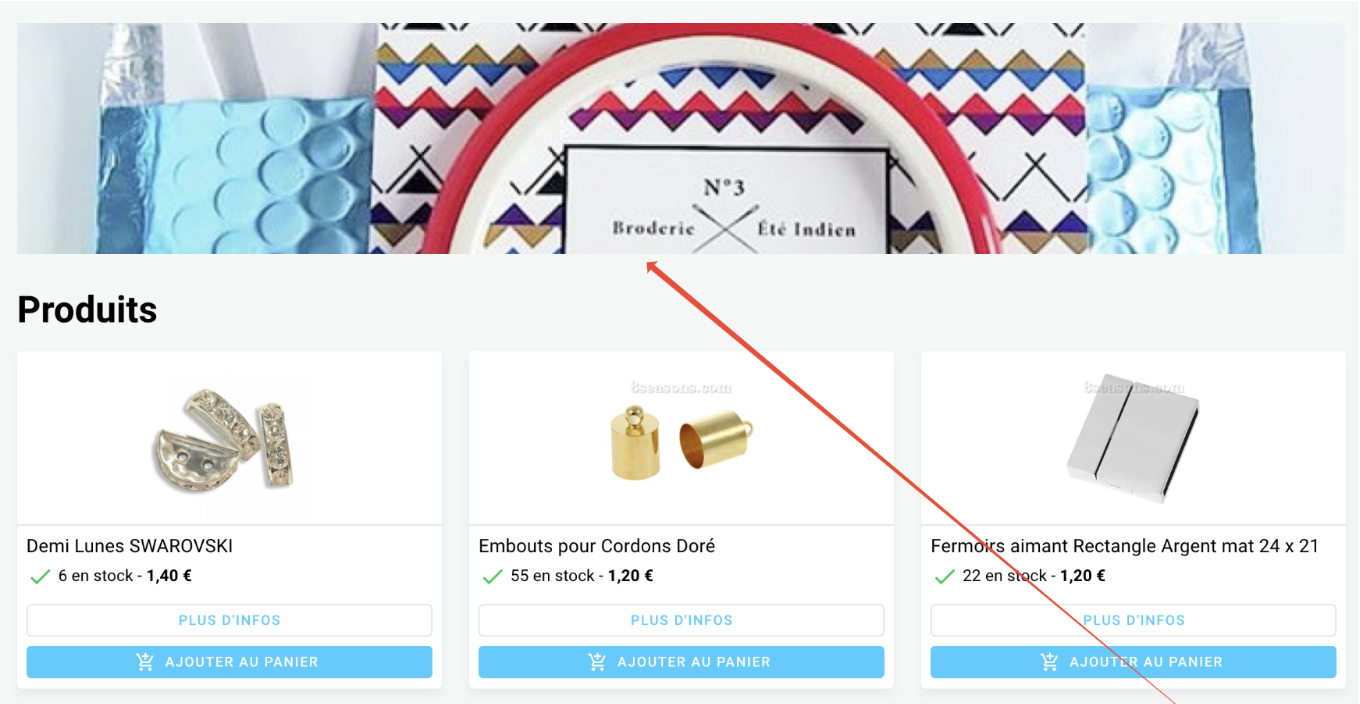 La bannière du Store s'affiche en haut de votre boutique (ratio 1500x300) :