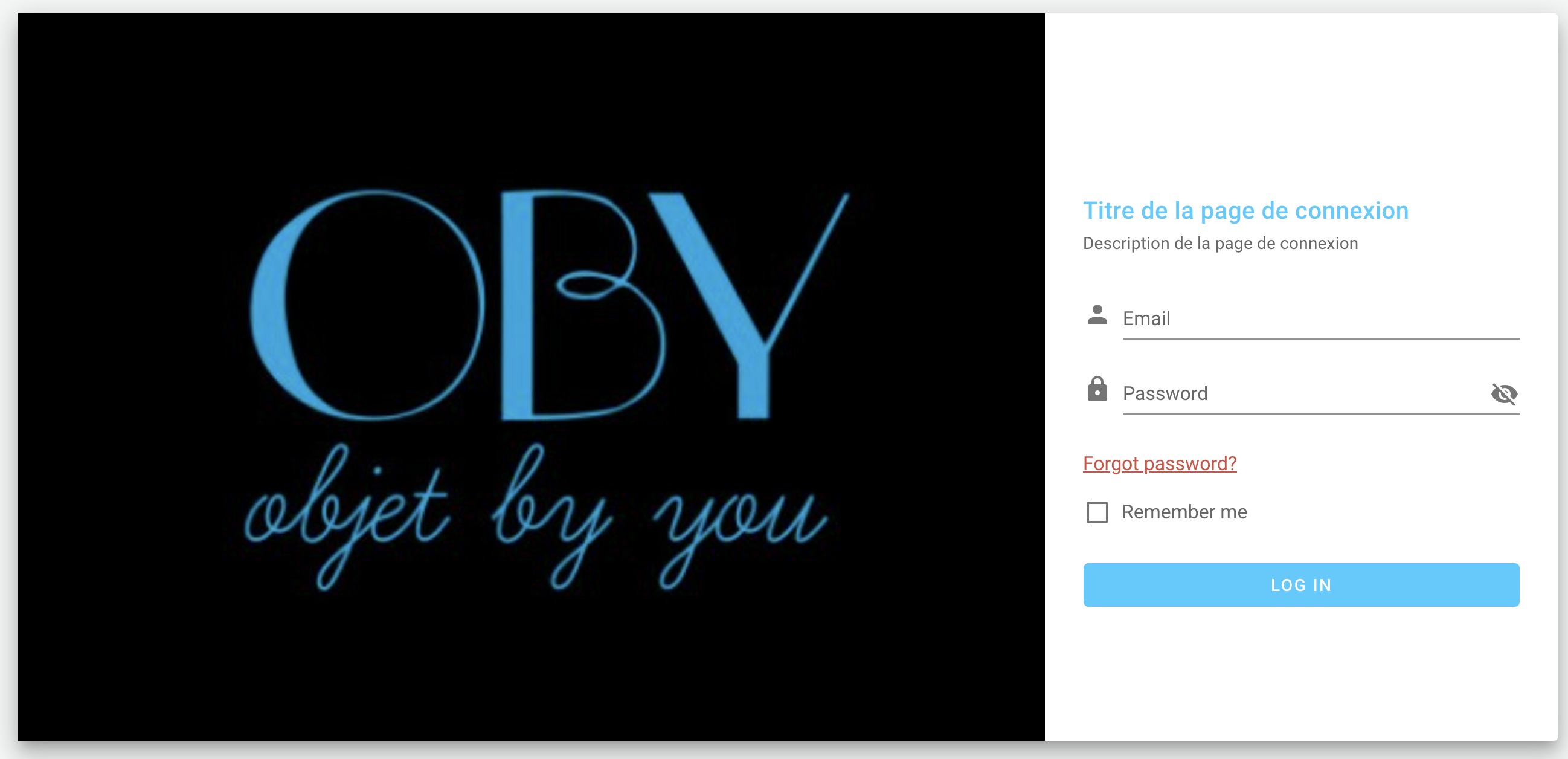 Voici l'écran de connexion de vos clients. Le fond d’écran de connexion est affiché sur la gauche. Pour un style sans bordure, nous recommandons un fond d'écran de taille 800x600.